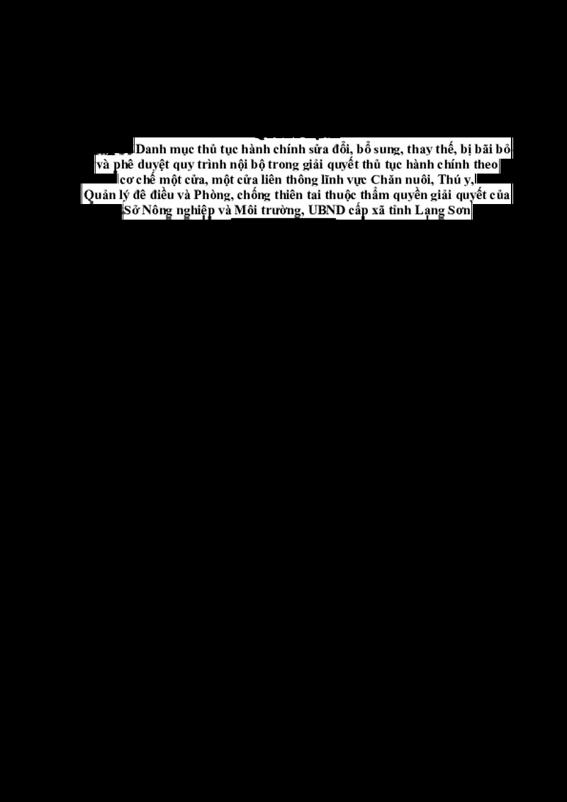 | Tiêu đề văn bản | Quyết định Công bố Danh mục sửa đổi, bổ sung, thay thế, bị bãi bỏ và phê duyệt quy trình nội bộ trong giải quyết TTHC theo cơ chế một cửa, một cửa liên thông lĩnh vực Chăn nuôi, Thú y, Quản lý đê điều và Phòng, chống thiên tai | ||