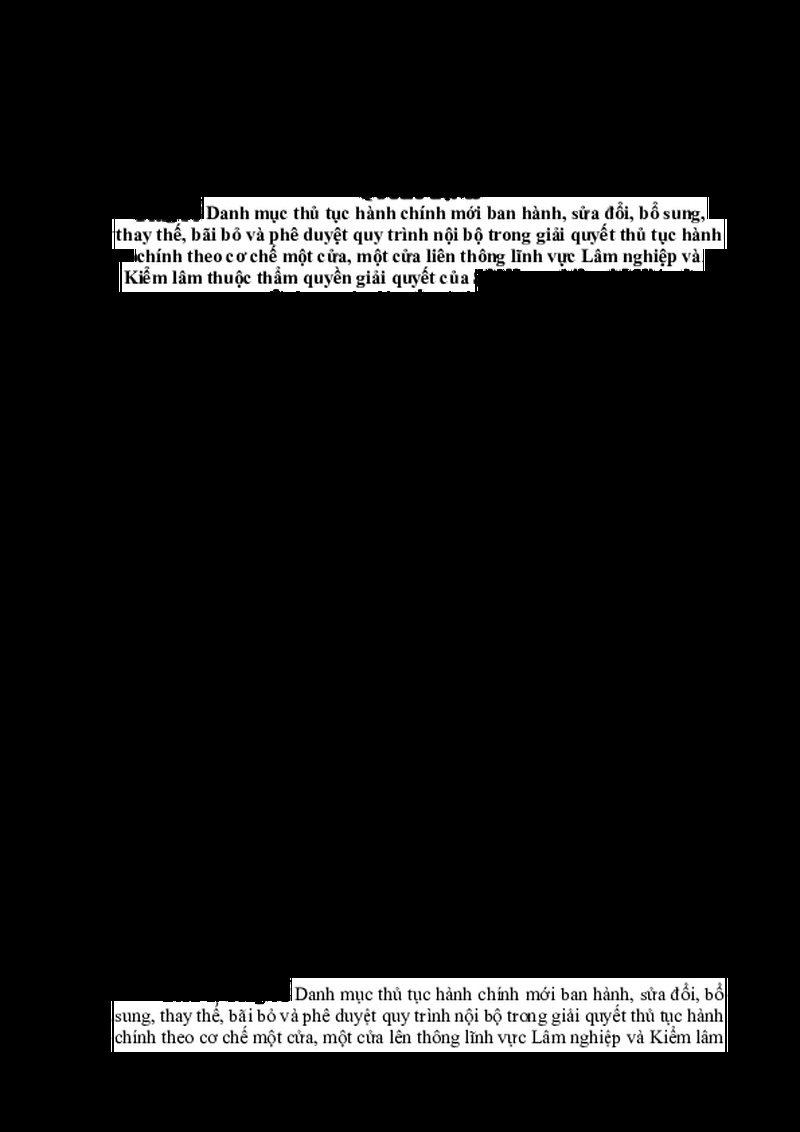 | Tiêu đề văn bản | Quyết định Công bố Danh mục thủ tục hành chính mới ban hành, sửa đổi, bổ sung, thay thế, bãi bỏ và phê duyệt quy trình nội bộ trong giải quyết thủ tục hành chính theo cơ chế một cửa, một cửa liên thông lĩnh vực Lâm nghiệp và Kiểm lâm | ||