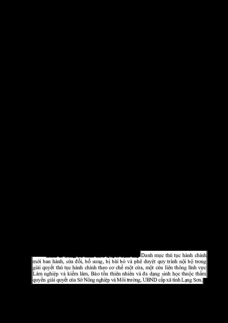 | Tiêu đề văn bản | Quyết định Công bố Danh mục TTHC mới ban hành, sửa đổi, bổ sung, bãi bỏ và phê duyệt quy trình nội bộ trong giải quyết thủ tục hành chính theo cơ chế một cửa, một cửa liên thông lĩnh vực Lâm nghiệp và kiểm lâm, Bảo tồn thiên nhiên và đa dạng sinh học | ||