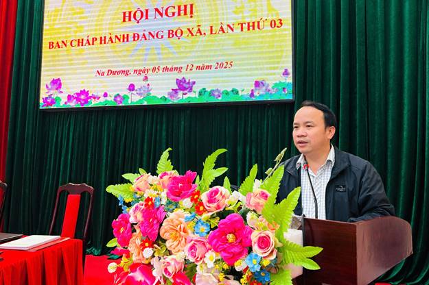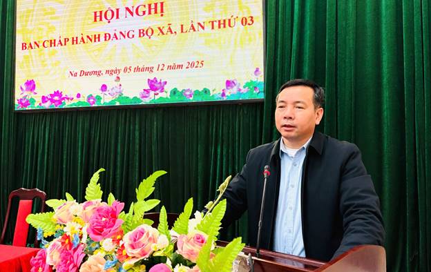 Ngày 5/12/2025, Ban Chấp hành Đảng bộ xã na Dương tổ chức Hội nghị lần thứ 03, khóa I, nhiệm kỳ 2025 – 2030 để đánh giá kết quả công tác năm 2025, triển khai nhiệm vụ trọng tâm năm 2026.