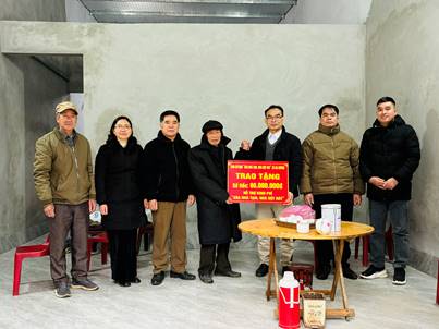 Đoàn công tác đã đến thăm, trao hỗ trợ tới gia đình ông Phùng Văn Ó, là gia đình thuộc đối tượng người có công được hỗ trợ xây mới nhà ở theo chương trình “xóa nhà tạm, nhà dột nát” năm 2026 của xã. Ngôi nhà được hỗ trợ theo thiết kế đảm bảo 3 cứng là: Tường cứng, nền cứng, mái cứng và được xây dựng theo kiểu cấp 4. Từ mức hỗ trợ 60 triệu đồng cùng phần vốn đối ứng của gia đình đã xây dựng mới được căn nhà đảm bảo an toàn, từng bước ổn định cuộc sống.