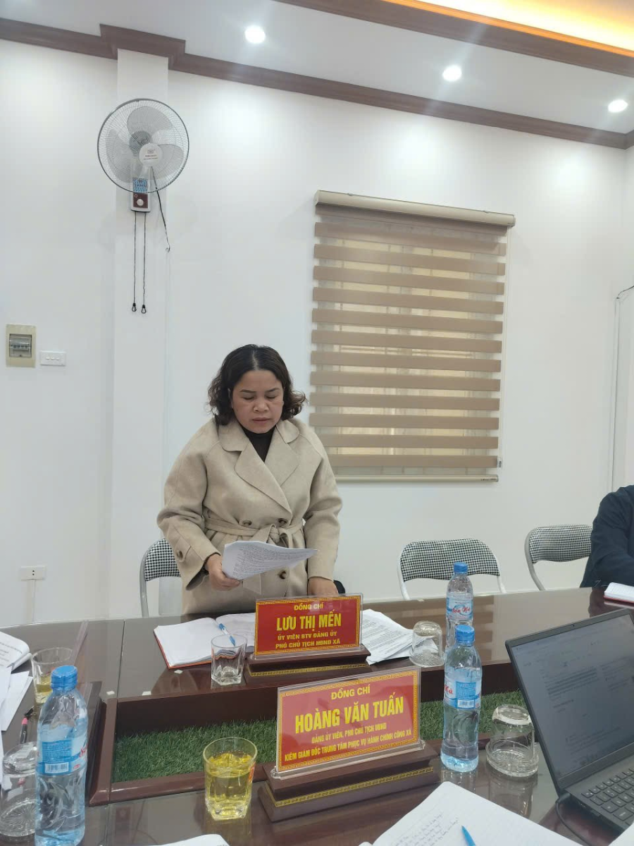 Đồng chí Lưu Thị Mến, Ủy viên Ban Thường vụ Đảng ủy, Phó Chủ tịch HĐND xã phát biểu tại buổi giám sát