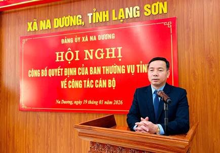 Ngày 19/01/2026, Đảng ủy xã Na Dương tổ chức Hội nghị công bố Quyết định của Ban Thường vụ Tỉnh ủy về công tác cán bộ. Đồng chí Hứa Văn Cường, Bí thư Đảng ủy, Chủ tịch HĐND xã chủ trì Hội nghị.