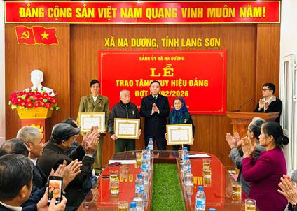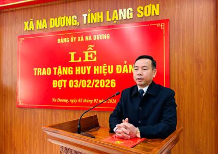 Ngày 02/02/2026, Đảng ủy xã Na Dương tổ chức Lễ trao tặng Huy hiệu Đảng đợt 03/02/2026. Dự có đồng chí Hứa Văn Cường, Bí thư Đảng ủy, Chủ tịch HĐND xã; đồng chí Chu Văn Lợi, Phó Bí thư Thường trực Đảng ủy xã.