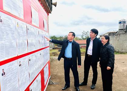 Đoàn công tác kiểm tra bảng danh sách niêm yết những người ứng cử đại biểu Quốc hội, HĐND tỉnh, HĐND xã tại khu vực bỏ phiếu số 01