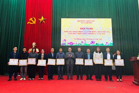 Dịp này, đã có 05 tập thể và 14 cá nhân nhận Giấy khen của UBND xã vì đã có thành tích xuất sắc trong thực hiện nhiệm vụ HĐND năm 2025.