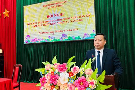 Ngày 20/01/2026, HĐND xã Na Dương tổ chức Hội nghị tổng kết công tác hoạt động năm 2025, triển khai nhiệm vụ năm 2026. Đồng chí Hứa văn Cường, Bí thư Đảng ủy, Chủ tịch HĐND xã và đồng chí Lưu Thị Mến, Phó Chủ tịch HĐND xã đồng chủ trì Hội nghị.