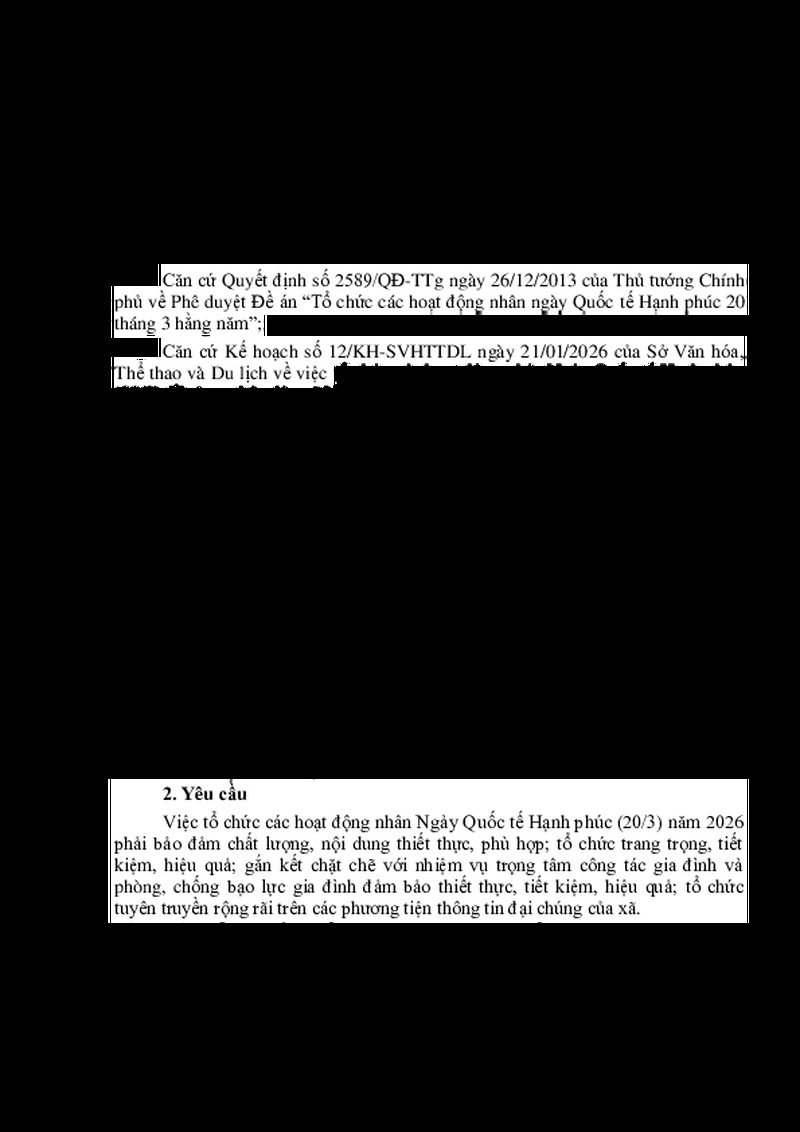 | Tiêu đề văn bản | Kế hoạch tổ chức các hoạt động nhân Ngày Quốc tế Hạnh phúc (20/3) | ||