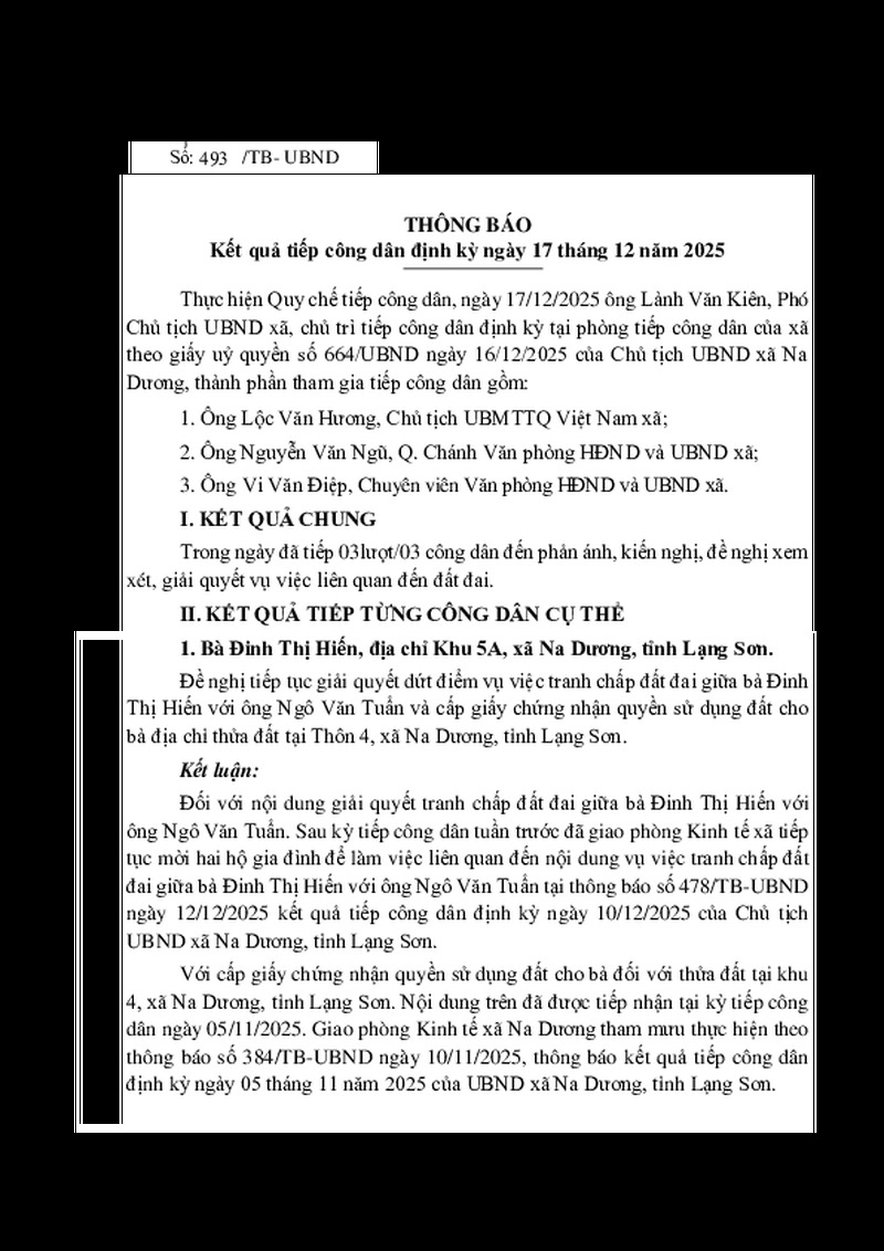 | Tiêu đề văn bản | Thông báo kết quả tiếp công dân định kỳ ngày 17 tháng 12 năm 2025 | ||