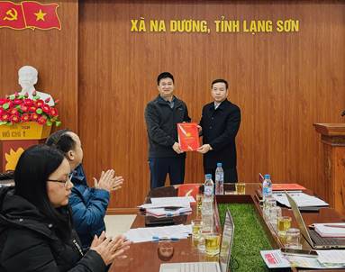 Đồng chí Bí thư Đảng ủy xã trao Quyết định thành lập Chi bộ các cơ quan Đảng xã Na Dương