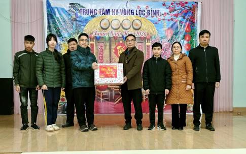 ĐỒNG CHÍ CHỦ TỊCH UBND XÃ THĂM, TẶNG QUÀ TẾT TRUNG TÂM HY VỌNG LỘC BÌNH VÀ ĐOÀN KINH TẾ QUỐC PHÒNG