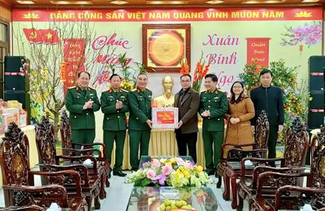 Tiếp đó, đoàn đã đến thăm, tặng quà Tết Đoàn Kinh tế quốc phòng 338. Tại đây, đoàn công tác đã được nghe đại diện lãnh đạo đơn vị báo cáo về những thành tích, kết quả thực hiện nhiệm vụ trong năm qua, phương hướng trong thời gian tới.