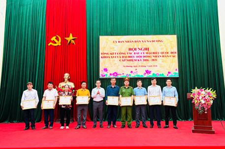 Nhân dịp này, 09 tập thể, 18 cá nhân được tặng Giấy khen của Chủ tịch Ủy ban nhân dân xã vì đã có thành tích xuất sắc trong công tác bầu cử đại biểu Quốc hội khóa XVI và đại biểu Hội đồng nhân dân các cấp nhiệm kỳ 2026 -2031.