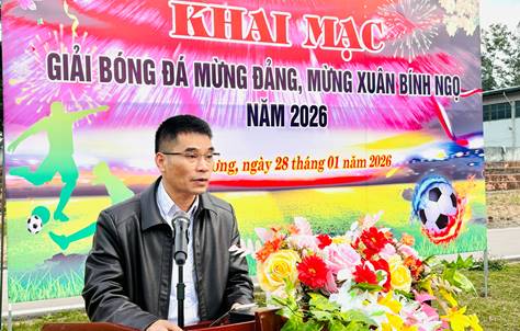 Phát biểu khai mạc giải, đồng chí Lành Văn Kiên, Phó Chủ tịch UBND xã đề nghị các Trưởng đoàn, huấn luyện viên, các cầu thủ thực hiện tốt nội quy, điều lệ giải, nắm chắc lịch thi đấu để bố trí các cầu thủ đến thi đấu đúng thời gian, địa điểm do Ban Tổ chức quy định; tổ Trọng tài điều hành các trận đấu thật vô tư, công tâm, khách quan, trung thực, chính xác, đúng luật; các cầu thủ phát huy tinh thần đoàn kết, thi đấu trung thực, thể hiện tính cao thượng, tạo nét đẹp văn hoá trong thể thao, cống hiến cho khán giả những pha bóng và những bàn thắng đẹp.