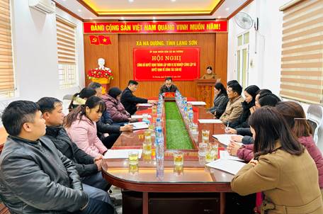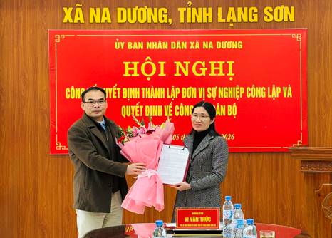 Ngày 05/01/2026, UBND xã Na Dương tổ chức hội nghị công bố các Quyết định thành lập đơn vị sự nghiệp công lập và các Quyết định về công tác cán bộ của UBND xã. Dự có đồng chí Vi Văn Thức, Phó Bí thư Đảng ủy, Chủ tịch UBND xã; Lãnh đạo Phòng văn hóa, Văn phòng Hội đồng nhân dân và Ủy ban nhân dân xã; Cán bộ, công chức, viên chức được điều động đến làm việc tại trung tâm dịch vụ công ích xã, trạm y tế xã.