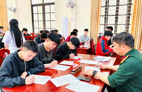 Ban Chỉ huy quân sự xã hướng dẫn công dân khai Phiếu tự khai sức khỏe nghĩa vụ quân sự, đăng ký các thông tin cần thiết của công dân vào Sổ danh sách công dân nam đủ 17 tuổi trong năm; Sổ đăng ký công dân sẵn sàng nhập ngũ và chuyển Giấy chứng nhận đăng ký nghĩa vụ quân sự cho công dân ngay sau khi đăng ký.