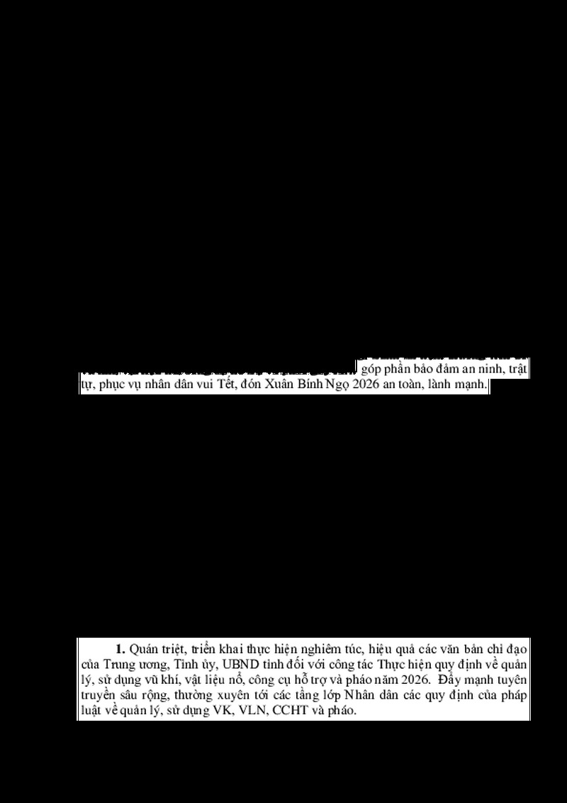 | Tiêu đề văn bản | KẾ HOẠCH Tuyên truyền thực hiện quy định về quản lý, sử dụng vũ khí, vật liệu nổ, công cụ hỗ trợ và pháo năm 2026 | ||